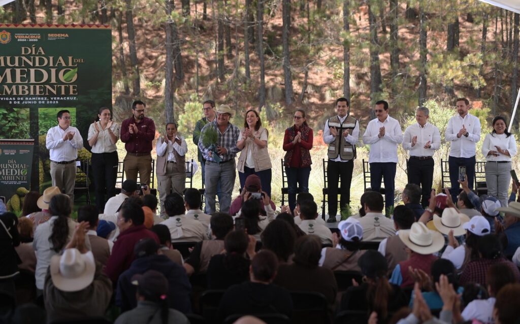 Xalapa, Ver., 05 de junio de 2025.- La presidenta de la Mesa Directiva de la LXVII Legislatura, diputada Tanya Carola Viveros Cházaro, asistió al acto para conmemorar el Día Mundial del Medio Ambiente, realizado en el municipio de Las Vigas y que encabezó la gobernadora de Veracruz, Rocío Nahle García, con la presencia de integrantes de su gabinete.