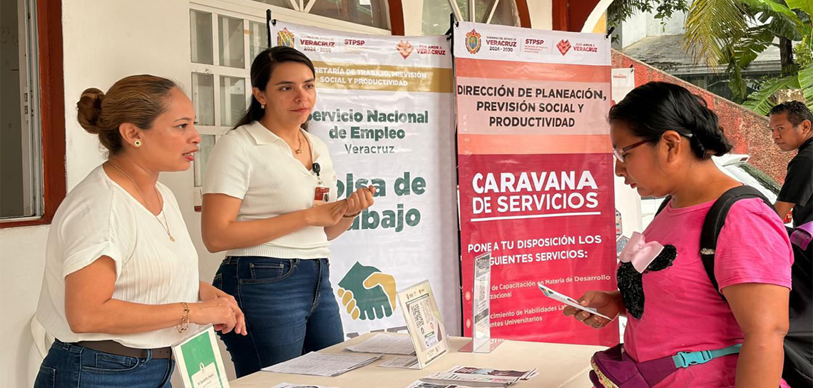 Mediante nuevas jornadas de Caravanas de Servicios, la Secretaría de Trabajo, Previsión Social y Productividad acercó oportunidades de empleo y programas de vinculación laboral a pobladores de Acatlán, Altotonga, Perote y San Andrés Tuxtla.