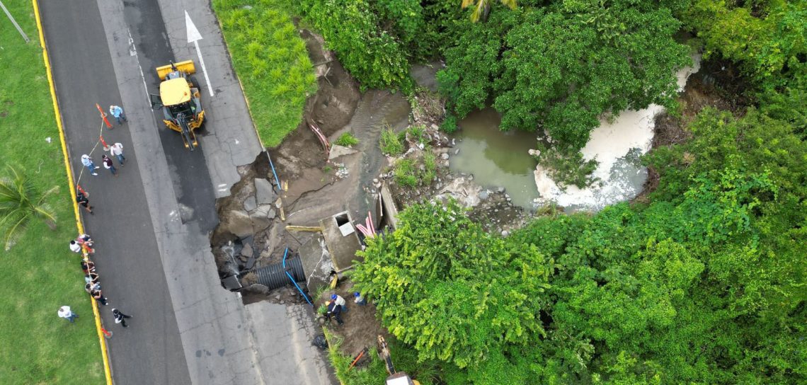 En atención a las condiciones meteorológicas que se presentan en la entidad, y derivado del temporal lluvioso registrado en las últimas horas, la Secretaría de Infraestructura y Obras Públicas (SIOP) informa que personal técnico y maquinaria se encuentran en la carretera federal 150 Antón Lizardo-Veracruz, a efecto de reparar el socavón formado sobre el bulevar Riviera Veracruzana en el municipio de Alvarado.
