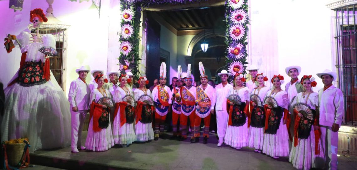 Las autoridades encabezaron el Recorrido de Arcos, Fachadas y Espacios del Centro Histórico, decorados con motivos alusivos a la celebración, tapetes de aserrín multicolor y altares dedicados a los fieles difuntos. Durante el trayecto, la Banda Sinfónica del Estado interpretó La Bamba y la Marcha de Zacatecas, emblemas musicales de esta unión cultural.