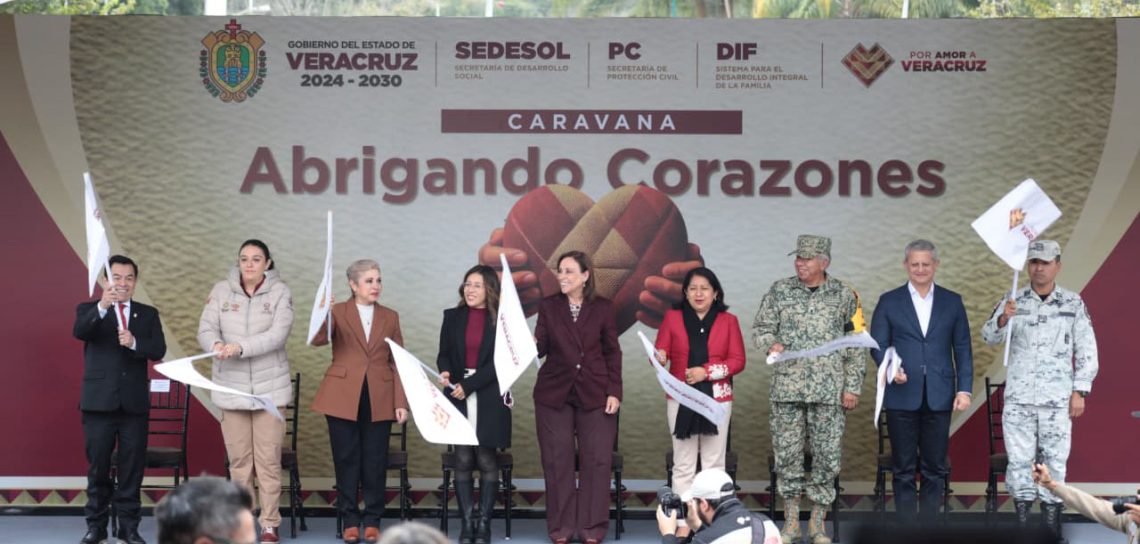 Xalapa, Ver., martes 09 de diciembre de 2025.– Con el compromiso de acompañar a las familias que enfrentan las temperaturas más bajas del estado, la gobernadora Rocío Nahle García dio el banderazo de salida a la Caravana Abrigando Corazones, desde la explanada del DIF Estatal, donde inició formalmente la entrega de apoyos invernales y servicios esenciales a las regiones con mayor vulnerabilidad ante el frío.